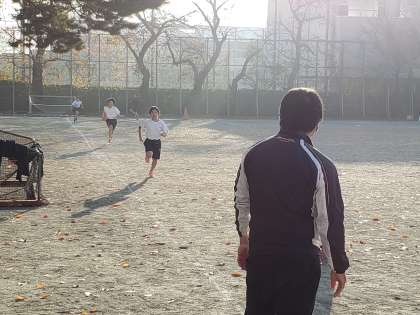 寒い朝です。吐く息も白く見えるようになりました。希望生徒による駅伝の朝練習が始まっています。インターバルでのダッシュを繰り返しています。