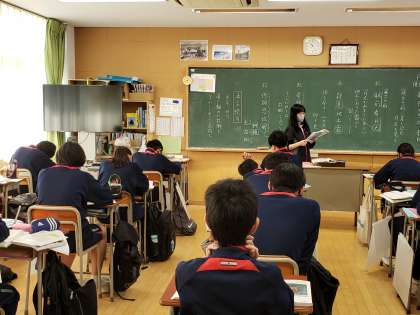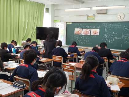 3年生国語、漢詩の学習中。李白や杜甫の詩を朗読したりしながら、その意味や情景を読み取っていきます。普段馴染みの少ない漢詩ですが、まさに教養の宝庫です。