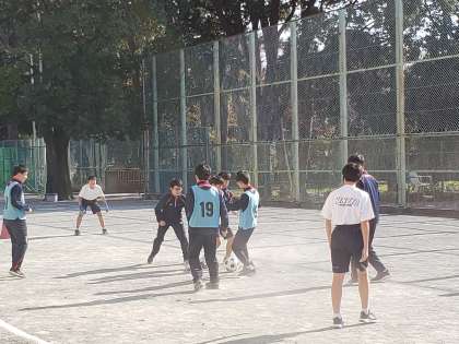 2年生体育はサッカーのミニゲーム。生徒同士が指示を出し合い、ゴールを狙います。こういったゲームになると生徒たちの自発性がフルに発揮されます。教師は安全面への配慮だけです。この積極性こそ砧中生の持ち味ですね。