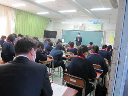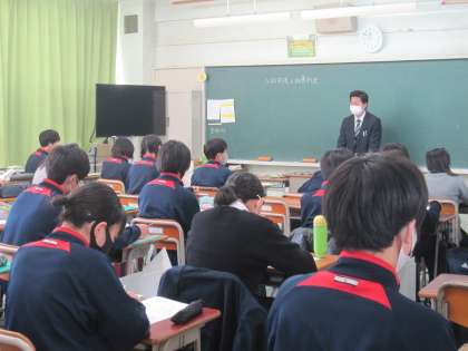 都立高校の入試の仕組みや私立高校の推薦制度について説明しました。2年生にとっては聞き慣れない言葉がたくさん出てきましたので難しかったようです。今回の学習をきっかけとして、目指す進路について自分から調べていくことができると良いですね。