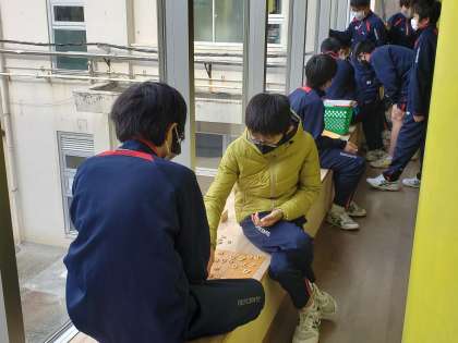 いつもの昼休みの光景が戻ってきました。校庭では元気が有り余って怪我のないように。囲碁・将棋は1年生も加わるようになりました。図書室は盛況でした。本を探す生徒、静かに本を読む生徒。