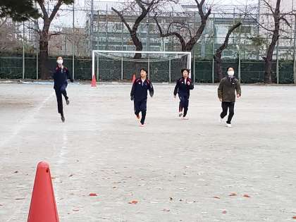 日差しのない曇り空、子ども駅伝を一週間後に控えた選手たちのトレーニングから今朝の砧中がスタートしました。陸上部の顧問も一緒にトレーニングに参加です。空模様はどんよりですが、黙々と練習する姿に、気持ちは晴れやかになりました。