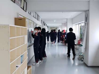 給食後の昼休み、いつもは校庭での遊びの様子を紹介することが多いのですが、今日は廊下や教室で過ごす生徒たちを紹介します。部活動ホワイトボードを確認したり、お喋りしたり、校庭を眺めたり、校舎内に穏やかな時間が流れていきます。こういった過ごし方も昼休みならではですね。