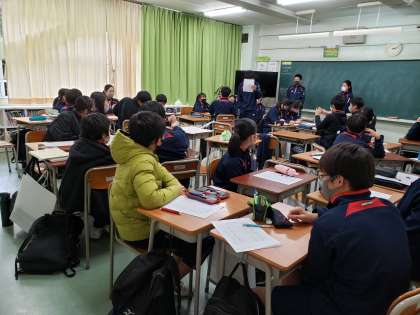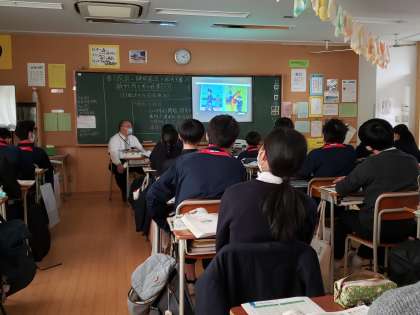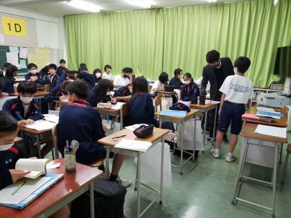 6校時、各学年の教室を回ってみました。3年生は授業中。社会科で刑事裁判についてドラマを通じて学んでいました。1・2年生は総合の時間。職業調べ新聞づくりと2学期の振り返りです。