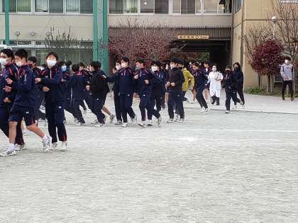 地震を想定した避難訓練、6校時終了のタイミングで校庭避難を行いました。