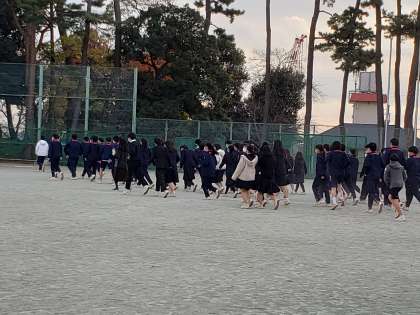 見事な避難行動だったのは3年生でした。整列の早さ、整列後の待機の姿勢、教員からの指示は一切必要ありませんでした。まさに三年間の成果だと思います。もちろん、2年生も同様に整列後まで気を抜くことはありませんでした。