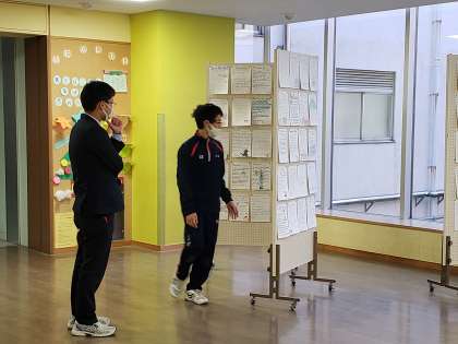 放課後、2年生がぎんなんホールの展示作品を模様替えしていました。東京のおすすめスポットを英語で紹介している作品です。この後部活動に参加する生徒もいるようですが、まずは展示作業が優先です。本来なら校外学習は都内巡りの予定でした。しかし公共交通機関を避けるため、鎌倉巡りに変更となりました。紙上による都内巡り、素敵な紹介文が勢揃いしています。