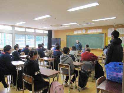 朝の学活では、はやる気持ちをおさえながら、先生の話をしっかり聞いていました。