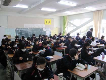 1,2,3年生の朝読書の風景です。