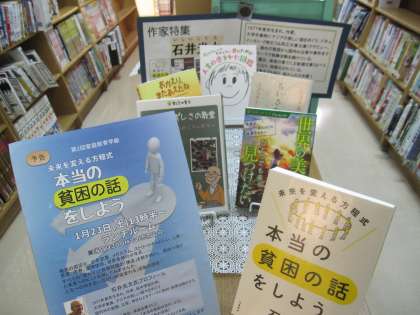 図書館には石井光太さんのコーナーができているので、石井さんにもご覧いただきました。サインもしていただきましたので、見に来てください。