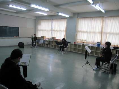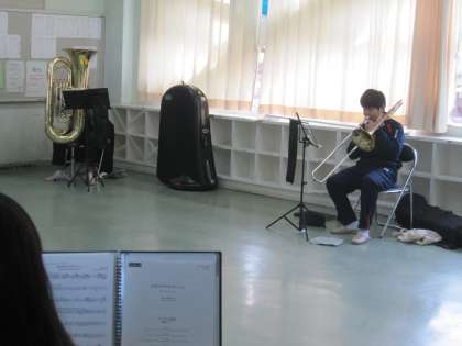 午前中、吹奏楽部が各教室に分散して練習を始めました。