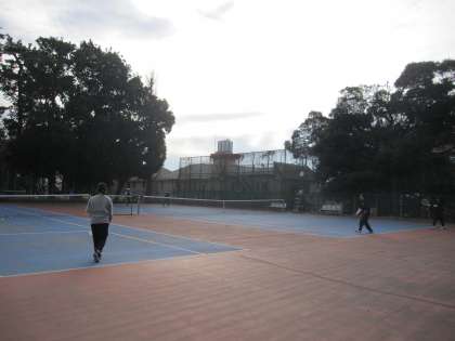 サッカー部もテニス部もコーチのアドバイスを受けながら元気に練習に励んでいます。