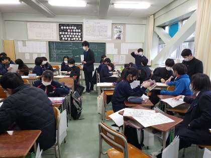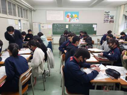 2年生校外学習。3月に延期となりましたが、今日から班別学習がスタートしました。1ヶ月以上も延期となり、生徒たちの気持ちを心配していましたが、それは杞憂だったようです。2年生のモチベーションは全く低下していませんでした。ホッと一安心するとともに、3月には何としてでも実現させたい、という思いを改めて強くしました。