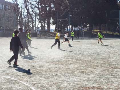 これまでは基礎練習が中心でしたが、ゲームに入ると生徒たちは生き生きとしてきます。動きも2・3年生に負けないくらい本格的でした。