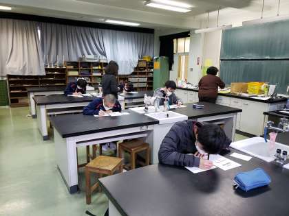 検定前には試験勉強に余念がありません。お互いに問題を出し合ったりしながら、緊張感の中にもほのぼのとした雰囲気が見られました。やはり理科的な知識が求められるようです。