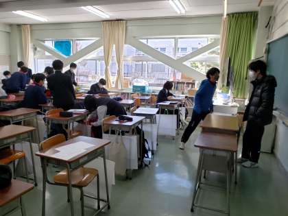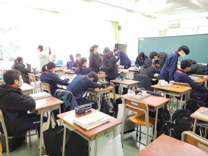 現在、砧中学校では体育着で一日過ごしている生徒が多くなっています。感染症対策として洗いやすい体育着を選んでいるご家庭が多いようです。また換気のため窓を開放していますので、防寒対策として授業中も上着を着用しています。各生徒がそれぞれの判断でその日の服装を選んでいます。