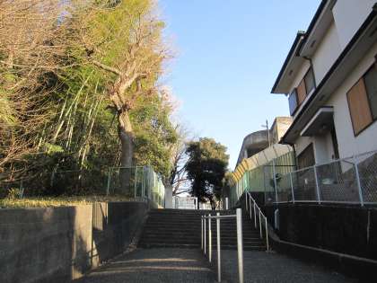 南門から登校する生徒たちは。毎日この坂を上っています。南門についたころには息が上がっています。毎日の事なので、自然と体力がつきます。