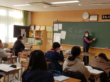 3年生、今朝は多くの生徒が高校を受験しています。各教室では普段より生徒が少なくなっていますが、復習問題などを中心に授業を進めています。授業中の生徒たち、黙々と問題に取り組んでいました。この落ち着いた雰囲気こそが今年の3年生の強みでもあります。