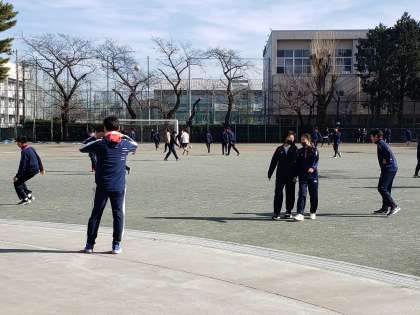 まだ水溜まりが残る校庭。昼休みの開放時間ではぬかるみを気にすることもなく生徒たちの歓声が響いています。3年生もサッカーに、バレーボールに、ラグビーに興じています。とにかく怪我が心配です。あまり本気モードにならないように、と伝えていますが、いざ校庭へ出ると全速力で走っていました。