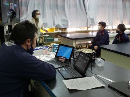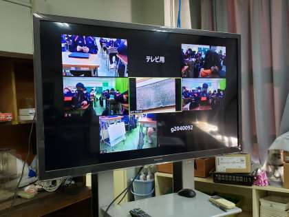 1年生は6校時にタブレットの使い方について学習しました。今回はリモートでの説明です。理科室から教務主任がモニターを通じて伝えています。各学級の様子はどうでしょうか。