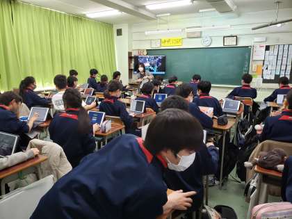 各学級の様子です。まずは初期設定から。リモートでの説明はまだ慣れないかもしれません。これからはこういった学習機会も増えてくると思います。とにかくいろんな使い方にチャレンジですね。