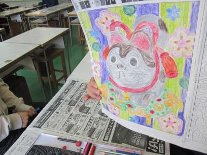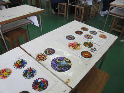 美術はグラスデコが終わった生徒はパズル塗り絵やスクラッチアートをやっていました。きれいな色に心癒されました。