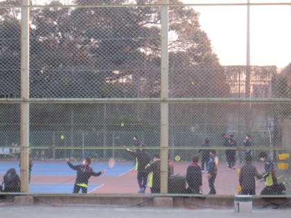 部活動の終了時刻は午後5時です。時間を惜しむように全力で取り組んでいます。陸上部の生徒はランニングの後、暑いと言って半袖で過ごしていました。風邪をひかないように気をつけてくださいね。