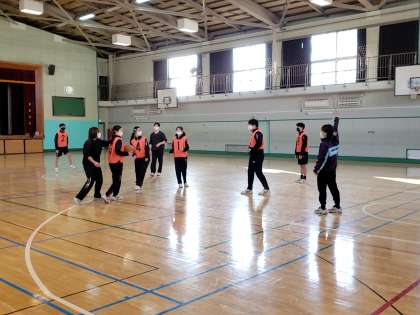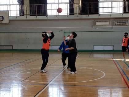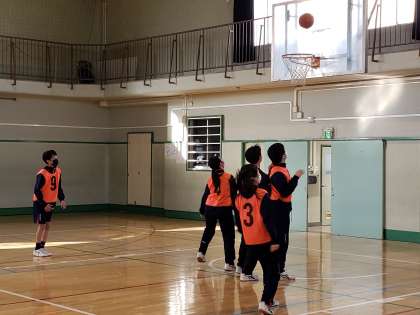 I組6校時は体育。今日はバスケットボールでした。ウォーミングアップでシュート練習をした後、いよいよ試合です。何と相手は先生チーム。それも体育専門のスポーツ万能メンバーか勢揃い。華麗なる連携プレーの前に、果たしてI組生徒たちはゴールを決めることができるでしょうか?