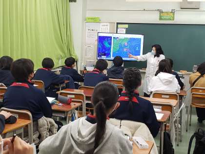 2年生理科は天気図を使って、前線と低気圧の関係について学習していました。本日昼頃の低気圧通過に伴う大雨も、この天気図を読み解くと説明できますね。