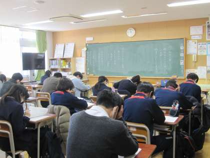 3年生は、入手対策の問題演習をしています。1年生から積み上げてきた国語力を駆使してかなりの長文読解にも集中して取り組んでいます。(副校長)
