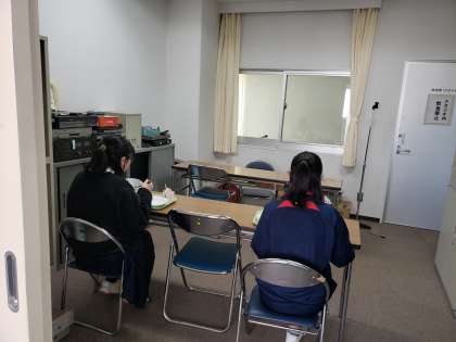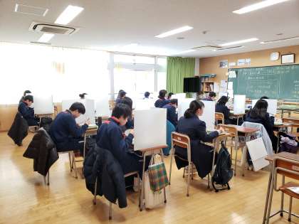 パーテーションで区切られ、会話ができない給食の時間。今朝の生徒会朝礼で放送委員長から報告があったように、放送委員会では少しでも楽しんでいただけるよう、リクエスト曲やおすすめ曲など、様々な工夫を凝らして昼の放送を提供しています。教室を回ってみると、曲に合わせてリズムをとりながら食べている生徒もいました。毎日の放送、ありがとうございます。