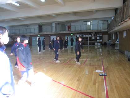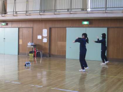 3年生は今までに習得したステップを取り入れながら、オリジナルのダンスを創作しています。自分たちの好きなアイドルの曲に合わせて、テンポの良い動きを見せています。教師に言われなくても自分たちで話し合って改善しているところは、さすが3年生です。うまくいったときは自然と拍手が起こり笑顔になっていました。発表は期末テストが終わってからです。