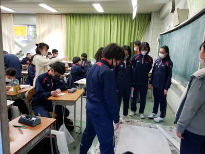 1年生は職業調べの発表です。ディスプレイでの見せ方など生徒たちは試行錯誤を繰り返していました。相手にどうアピールするかも表現力育成には必要な要素です。