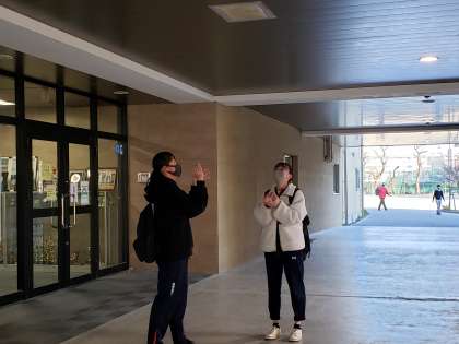 今週から砧中内に設けた新体験コーナー「鳴き龍」。下校時に手を叩いて体験している生徒の姿も見られます。果たして「ビョー〜ン」という反響音、龍の鳴き声に聞こえるでしょうか?