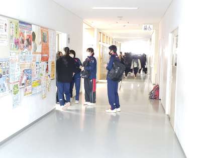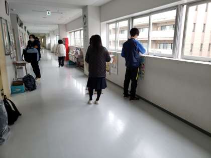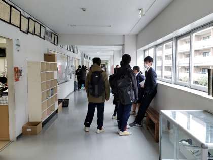 放課後の職員室前では、明日の試験教科の質問のため、生徒たちと教科担任が話し合っていました。さすが砧中生、感心…感心…。