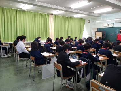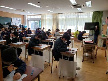 学年末考査最終日となりました。3年生にとっては中学校生活最後の定期考査ですね。悔いの残らないようじっくりと考えて解いていきましょう。1年生も定期考査に臨む姿勢がしっかりとしてきましたね。4月からは新入生のお手本として期待していますよ。