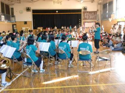 吹奏楽部は体育館でマーチ「海兵隊」と、コンクールで演奏する「白鳳狂詩曲」を演奏しました。1年生は4月に入部してはじめての舞台で緊張したようですが、練習通りに演奏することができました。聴きに来てくださったみなさん、ありがとうございました。