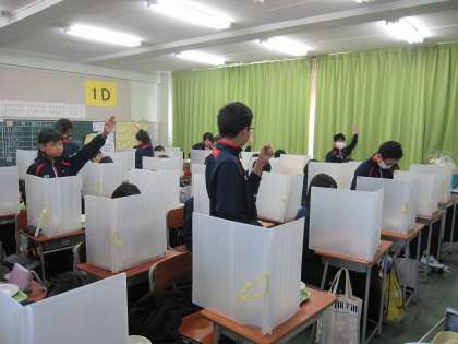 大きな声を出さないようにじゃんけんの時もジェスチャーや目で合図したり、マスクをしている先生が掛け声をかけたりしていました。