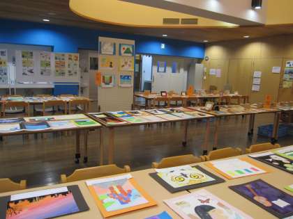 砧中学校 第3学年 美術卒業記念展 をランチルームにて行い、1,2年生に3年生の作品を鑑賞してもらう機会を設けました。