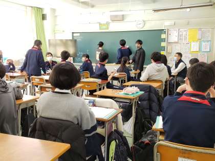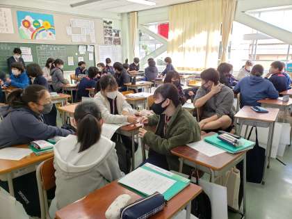 2年生校外学習、23日当日に向けて準備にも熱が入ってきました。6校時には各係ごとに打ち合わせが行われています。生徒たちの提案により3月後半に日程を延期してたことで、実現可能性が高まってきました。もちろん打ち合わせでは感染症予防を含めた安全対策が全てに優先します。今年度生徒たちにとっての貴重な学校行事、一歩一歩着実に進めていきたいと思っています。