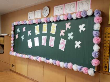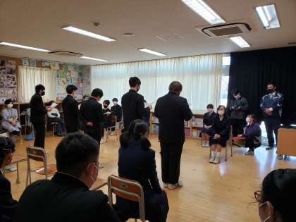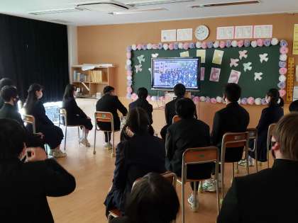 午後からI組でお別れ会が開かれています。三年間を振り替えるかスライドショー。保護者の皆様も教職員も改めて三年間の子どもたちの成長に驚かされていました。1・2年生からの感謝の言葉を聞きながら、後輩たちはしっかりと3年生の思いを受け継いでいると実感しました。