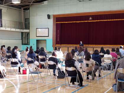 今年度最後の保護者会を開催しました。緊急事態宣言延長で開催が危ぶまれましたが、会場設定を工夫して実施することができました。タブレット使用のルールやコロナ下での服装のあり方など、次年度に向けて取り組まなければならない課題は多々あります。既に生徒会を中心に生徒たちの意見集約も始まっています。今朝の生徒会朝礼でのメッセージ、「オーダーメイドの砧中づくり」を目指し、砧中生による砧中生のための解決を図っていきたいと思っています。