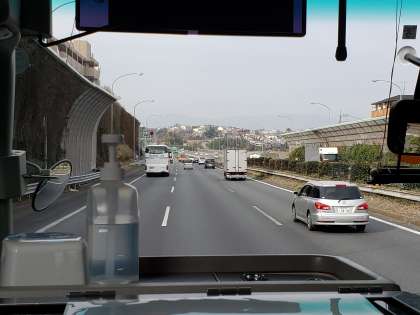 高速に乗りました。世田谷通りは渋滞でしたが、高速に入ってからは順調に進んでいます。今は町田を過ぎたところです。バス内ではクイズ大会やダジャレ大会で盛り上がっています。