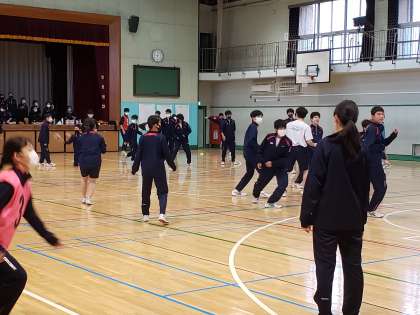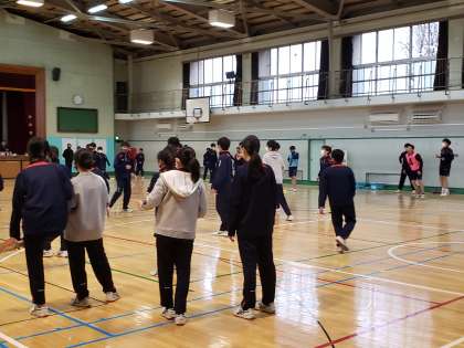 降りしきる雨にさぞかし生徒たちはガッカリしているのでは、と思っていました。それは全くの杞憂でした。体育館のアリーナも格技室も大盛り上がりでした。窓を開けている関係で寒さを心配さていましたが、熱気溢れるプレーの連続です。