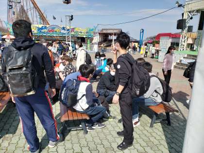 各グループが戻ってきました。おおよそ5〜6のアトラクションに乗ったようです。全員揃えば出発します。