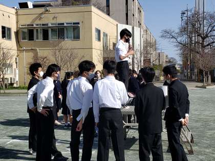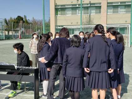 より良い合唱とするために、指揮者、伴奏者、パートリーダーで確認しながら進めています。自分たちで考え、自分たちで解決していく、この姿もまた1・2年生へ伝えたいメッセージです。