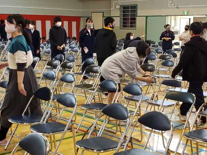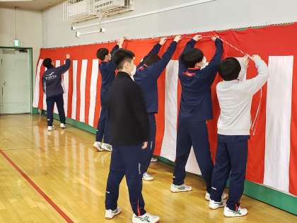 明日の準備が着々と進んでいます。2年生が中心となって体育館の飾り付けや椅子の配置などに協力いただきました。本当は明日在校生として式に参加したかった生徒も多かったようです。今日準備に取り組むことで、卒業生のために少しでもお役に立ちたいと話してくれた生徒もいました。前日から泣きそうになりました。この在校生の心意気、来年度の砧中を安心して任せられますね。