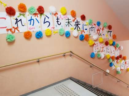 明日の卒業式、在校生で臨席できるのは代表生徒のみ。多くの1・2年生は3年生と今日でお別れとなります。直接お礼の言葉を伝える機会のない在校生が校舎内に様々なメッセージを飾りました。週明けからは寂しくなりますが、コロナ下にあっても目標を見失わず前進し続けた卒業生の姿勢やその思いを、必ずや受け継いでいってくれることでしょう。