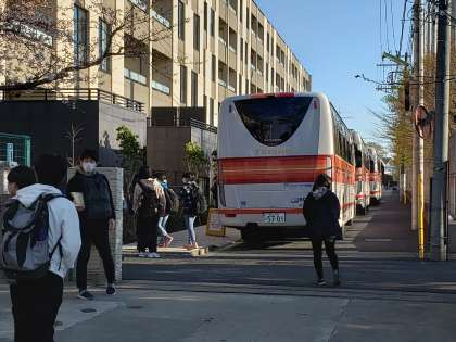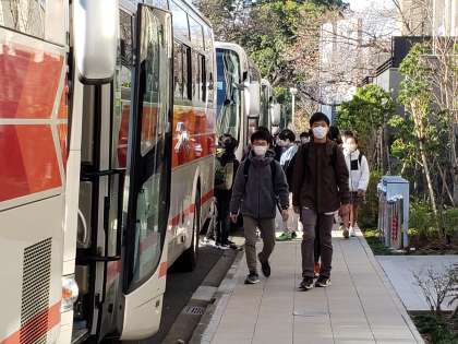 晴天に恵まれました。鎌倉校外学習、いよいよ出発です。