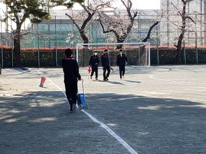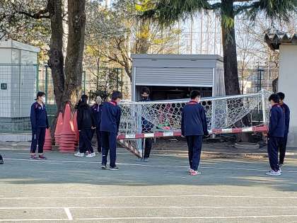 2年生が出発しました。その頃校庭では1年生がスポーツ大会の準備にかかり始めました。今日の種目はドッジボールにサッカー、バレーボールそして何と全員リレーです。既に来年度の運動会を視野に入れています。
